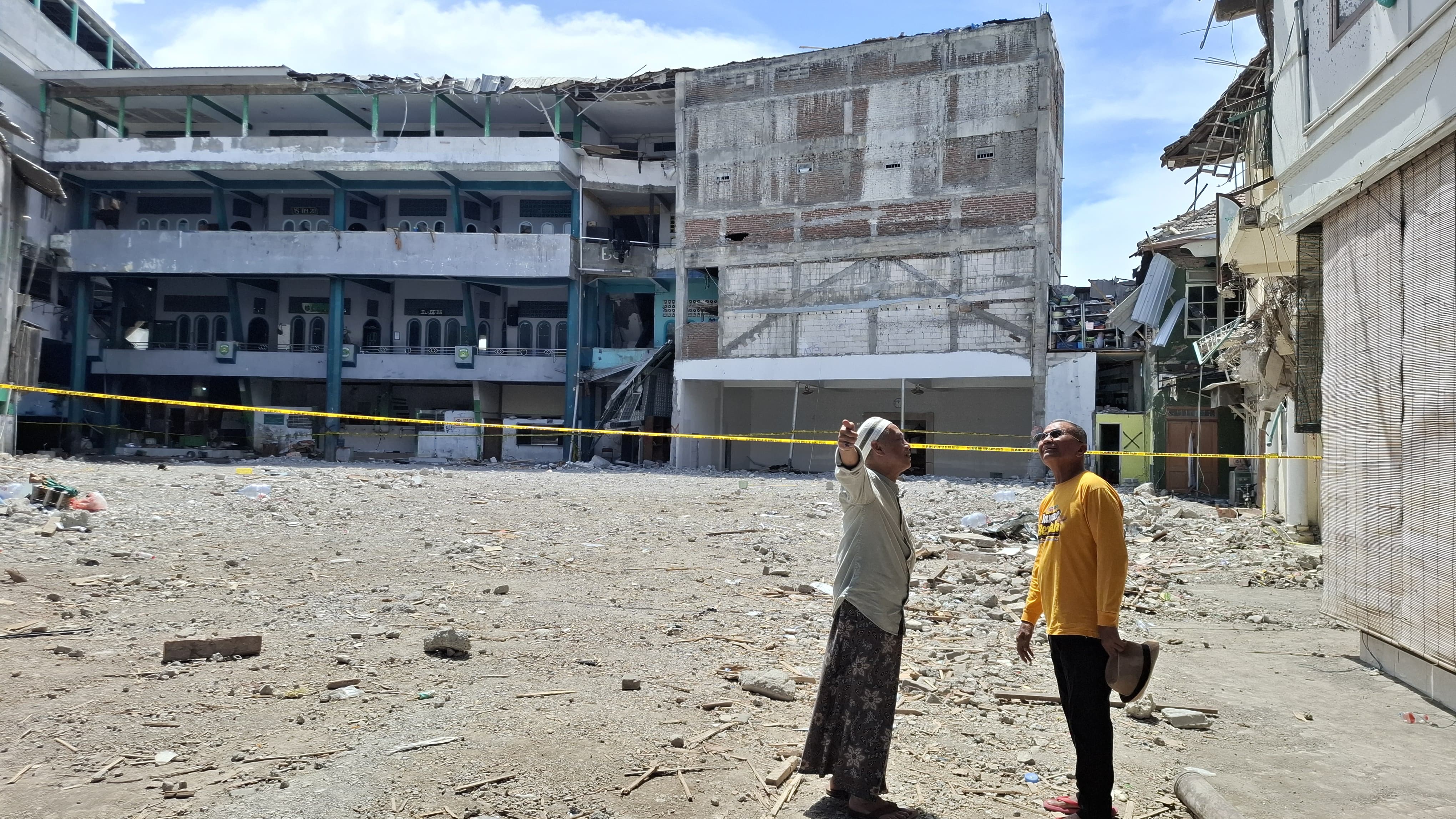 Duka akibat runtuhnya bangunan baru di pondok pesantren itu sudah mulai cair. Reruntuhan bangunan empat lantai yang roboh itu sudah bersih. Lokasi bangunan itu sudah jadi hamparan yang dipasangi pita polisi.