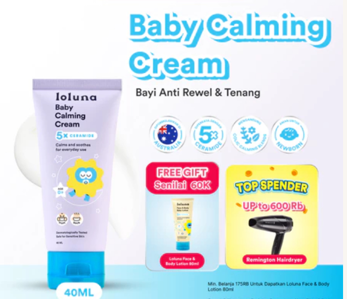Loluna hadir dengan rangkaian produk yang diformulasikan khusus untuk kulit dan rambut bayi sejak newborn, dengan kandungan ceramide, bahan natural, dan aroma khas yang lembut.