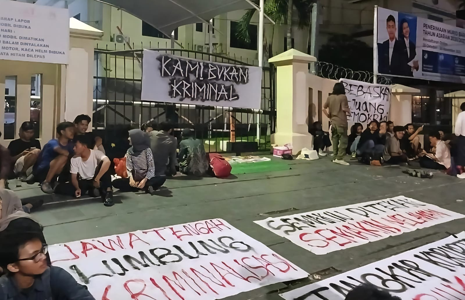 Aksi solidaritas Tim Suara Aksi di depan Polrestabes Semarang, menuntut supaya dua aktivis muda Kota Semarang, Fathul Munif (28) dan Adetya Pramandira (26), dibebaskan. -Foto: LBH Semarang.-
