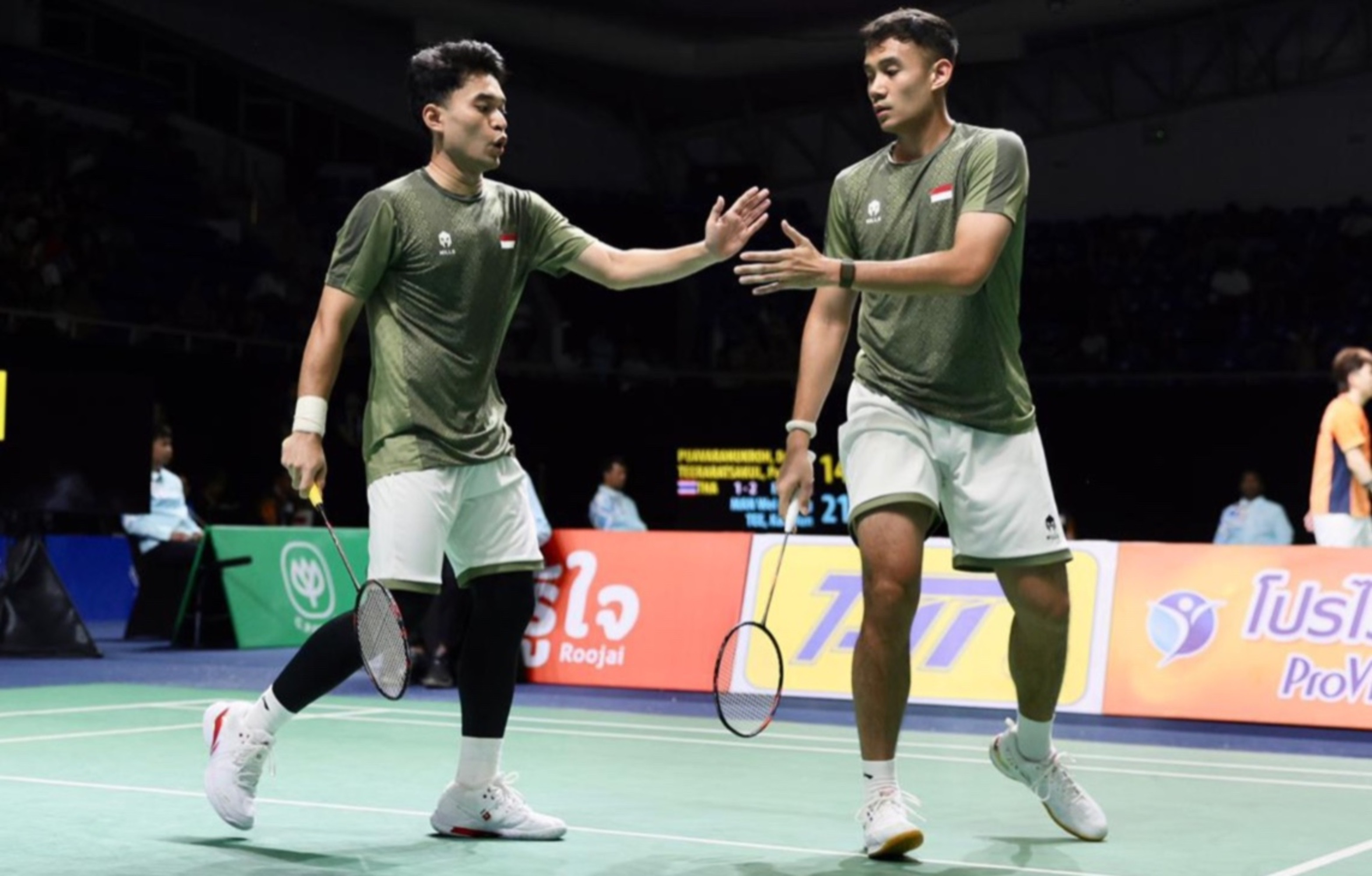 Berlaga di Thamasat Rangsit Gym 4, Pathum Thani, Senin (8/12/2025), Sabar Karyaman Gutama dan kolega menang dengan skor 3-1.